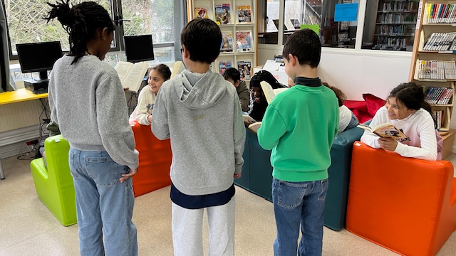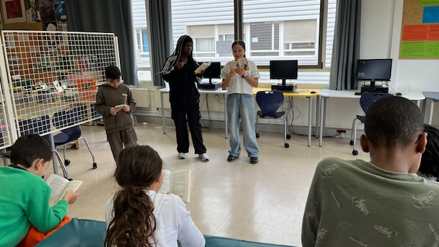 Certains extraits contenant assez de dialogues font l’objet d’une théâtralisation. Les rôles sont répartis, échangés et nous mettons en scène un passage particulièrement animé, vivant, drôle. Tous les élèves du Club participent !